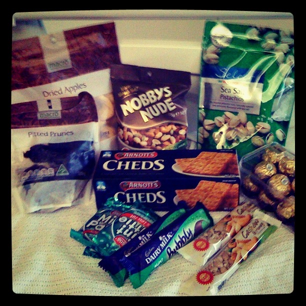 When the doctor told me I needed to go into hospital the next day I had a mini moment of preparedness. I packed all the stuff I needed into my case and there was even enough room for my pillow to fit. Apart from that I only took my laptop bag and a bag of essential nibbles to get me through the truly shitty hospital food. My sister gave me the ferrero rochers for Valentine's Day to cheer me up about hospital stays and bronchoscopies. I also bought a bag of stone fruit. Can't go without my fruit!