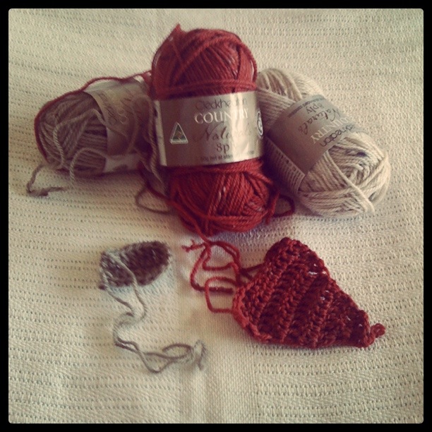 This morning I have been hooking away. Back to a pattern rather than unsuccessfully attempting to branch out on my own. Differently though, this particular pattern is in German, which I don't speak, so I was a bit at loss as to how to follow it. It is in pdf so I couldn't do the translator button which seems to have disappeared from my firefox anyhow. I scrolled a bit further and saw that the pattern was also drawn out, similar to the photo below, so I thought I'd have a go at following it that way. It was a fairly easy pattern and there was success. Yay! Now I need to get to work with the natural coloured wool to bring it all together.